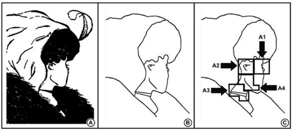 The phenomenon of multisensory audiovisual semantic integration is a process through which information of a sen sorial visual modality is perceived as integrated with stim ulus of an auditory nature due to the similarity in terms of semantic load (Hsiao et al., 2012; Smith et al., 2007). The audiovisual semantic congruency effect is normally assessed by measuring outputs observed when presenting matching and mismatching images and sounds (Spence, 2007, 2011). For instance, bistable images have been used so as to assess the semantic congruency effect (e.g., Hsiao et al., 2012; Smith et al., 2007), given the fact that these images can be interpret ed in two different ways in terms of semantic content (Rodrí guez-Martínez & Castillo-Parra, 2018a). The correspondance is observed when it can be assumed that both, the auditory and the visual stimulus, constitute a perceptual unity, also called unity assumption (Vatakis & Spence, 2008). It is possi ble to use semantic context by stimulating auditorily through soundtracks while observing bistable figures for a long period of time (Smith et al., 2007). That context can be provided by tones of voice, as long as the content of the message itself is unclear because of the unfamiliarity with the language that is being used (Hsiao et al., 2012). The influence exerted by the tones of voice can operate as a top-down modulating factor (Rodríguez-Martínez & Castillo-Parra, 2018b), despite the fact that there can be bottom-up modulating features that affect the interpretation of the visual stimulus like ocu lar fixations in areas that favour its perception (Hsiao et al., 2012). In this regard, Gale and Findlay (1983) demonstrated that there are critical areas in the bistable image my girl friend or my mother-in-law that influence the perception of its two possible percepts. It was suggested that certain areas enable the observer to perceive one image more than the other (young woman or old woman), as can be seen in Fig ure 1. Thus, the A1 area, which modulates the young woman percept, contains defining lines of the eye and nose of the young woman; the A2 area predominantly defines the ear of the young woman and the eye of the elderly one; the A3 area, modulating the percept of the elderly woman, refers to the elderly woman’s mouth; the A4 area contains a line that defines the elderly woman’s nose and, at the same time, a contour of the young woman’s chin. Fixating on the lines and features of a bistable image can influence its final perception (Brouwer & van Ee, 2006).
