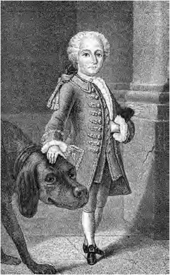 Como já antecipei, não é preciso muito esforço para reconhecermos nessa configuração um tropo pictórico frequente, em particular na pintura cortesã espanhola: a vizinhança entre anões e cães. O próprio Velasquez já havia pintado, duas décadas antes, um Anão da corte (c. 1630), acompanhado de um enorme cachorro. Retido pela coleira, o animal mostra-se obediente, pois claramente poderia arrastar o anão se assim o desejasse. Quase, um século antes, o holandês Antônio Moro, que prestou serviços às cortes espanhola e portuguesa, havia feito um magnífico retrato do Anão do Cardeal de Granvelle (1549-1553) com a mão repousando sobre o dorso enorme, exaltando sua obediência já que não precisava ser contido por coleira alguma. O filho e sucessor de Felipe IV, Carlos II, último representante da decadente dinastia, também teve seus anões. Dois deles podem ser vistos nos jardins do Palácio do Bom Retiro, diante do túmulo de Felipe IV, conduzindo um gigantesco mastim, em uma pintura de Jan Van Kessel, o Jovem (Os Anões de Carlos II, 1670). O duplo cão-anão é tão persistente que ainda podemos encontrá-lo em um retrato de Bébé, o anão francês do ex-rei Estanislau, da Polônia, pintado por volta de 1760 (Figura 2).