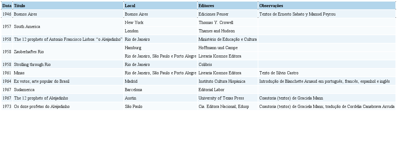 O lançamento de South America, em 1957, fotolivro de Hans Mann com o selo da Thomas Y. Crowell, de New York, e da Thames and Hudson, de Londres, conectou as imagens do fotógrafo com o mercado editorial internacional e, sem dúvida, representou para ele uma grande oportunidade profissional. No ano seguinte, o fotógrafo reuniu suas imagens em duasnovaspublicações, uma especificamente sobre o Rio de Janeiro, lançada na Alemanha, Brasil e Holanda por editoras que atuavam em parceria e outra pelo governo brasileiro. Mann também veio ao Brasil para trabalhar na documentação do patrimônio e logo depois de se fixar no Rio de Janeiro já viajava para o estado de Minas Gerais com essa missão. Em Congonhas, registrou os profetas do Aleijadinho, após a sua primeira grande restauração pelo Instituto do Patrimônio Histórico e Artístico Nacional, tema igualmente presente na obra de outros fotógrafos nacionais e estrangeiros contratados pelo órgão (COSTA, 2015, p. 151-152). As imagens foram reunidas em The 12 prophets of Antonio Francisco Lisboa: “O Aleijadinho”, publicação bilíngue do Ministério da Educação e Cultura, de 1958. O trabalho de pesquisa e documentação então realizado foi revisitado pelo fotógrafo em edições posteriores. Um ano depois de sua morte (1967), The 12 prophets of Aleijadinho foi lançado nos Estados Unidos, pela Universidade do Texas, com apresentação assinada por Graciela e Hans Mann e texto da pesquisadora que era também esposa do fotógrafo. A edição em língua inglesa e sua publicação em português, pela Companhia Editora Nacional e Edusp, em 1973, selaram a realização conjunta de um fotolivro que se tornou referência sobre o patrimônio mineiro. O estado de Minas Gerais ainda seria o tema de outro fotolivro (Minas, 1964).