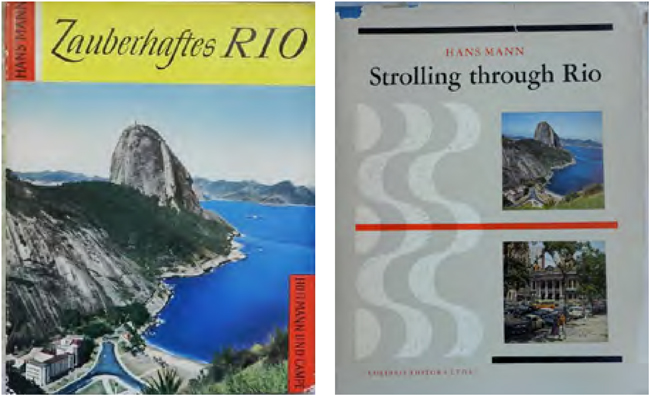 Em 1958, vivendo há menos de dois anosno Brasil, Mann concretizou no Rio de Janeiro um projeto fotográfico e editorial ainda pouco comum por aqui, em obra inteiramente consagrada ao seu trabalho autoral, com qualidade gráfica e editorial notáveis para a época, projeto que nos oferece hoje uma visão compreensiva da paisagem carioca e suas contradições. O fotolivro Zauberhaftes Rio (Hamburg: Hoffmann und Campe; Rio de Janeiro, São Paulo e Porto Alegre: Livraria Kosmos Editora, 1958) e a versão intitulada Strolling through Rio (Amsterdam: Colibris, 1958) apareceram em edições semelhantes com capas distintas, sendo uma em alemão e a outra em inglês e português, ambas sob a chancela da editora Kosmos. A empresa tinha vinte anos de experiência no Brasil e ramificações internacionais quando os livros de Hans Mann foram publicados, contando com o suporte e a experiência do editor austríaco Erich Eichner, proprietário da editora. Nos anos 1940, Eichner tinha sido responsável pela organização dos fotolivros Cidade e arredores do Rio de Janeiro: a jóia do Brasil e A cidade maravilhosa: Rio de Janeiro e seus arredores. Com as parcerias inerentes ao processo editorial, pode-se afirmar que o “Rio encantador” de Hans Mann representava a um só tempo o olhar pessoal e a vontade coletiva de um retrato fotográfico da cidade concebido para ser também um dos lugares de memória de sua paisagem.