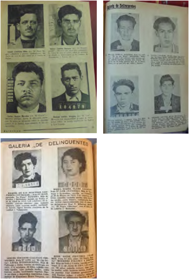¿Eran estos retratos un reflejo de la realidad? Desde su invención, la fotografía había sido concebida como un documento legítimo de autoridad. Se pensaba que el funcionamiento mecánico de la cámara debía eliminar la posibilidad de cualquier interferencia humana. Nuestra mirada, por supuesto, es distinta, en la medida que consideramos a dichos retratos como una manera de mostrar y modelar una imagen determinada de la realidad, no siendo un reflejo de ella. Si bien del siglo XIX al XX existieron transformaciones técnicas que mejoraron la calidad de las fotografías, las galerías de delincuentes más que modificar su formato, incorporaron nueva información como los números de registro del archivo policial, las huellas dactilares, los apodos y algunos textos que entregaban información concreta sobre el retratado: edad, tipos de delitos, lugares frecuentados, etc. Si bien a mediados del siglo XX la antropometría en Chile se consideraba superada, las galerías de delincuentes que aparecen en nuestras revistas muestran, al igual que los contenidos narrativos, una dualidad entre, por una parte, establecer una suerte de tipología general del delincuente-criminal y, por otra, centrarse en casos particulares, para lo cual la fotografía era fundamental al momento de observar, medir, catalogar y clasificar a los cuerpos, permitiendo su identificación y comparación con otros grupos según sus tipos o clases de delitos y crímenes. En tales galerías subyacía la idea de que el archivo fotográfico policial permitía la producción de un conocimiento social, en la medida que ayudaba a establecer un tipo de delincuente-criminal y rescataba a la vez la singularidad de sus rostros y gestos. Dicho conocimiento, al estar ligado a una red institucional como lo era el Servicio de Investigaciones, no era inocente, generándose efectos.