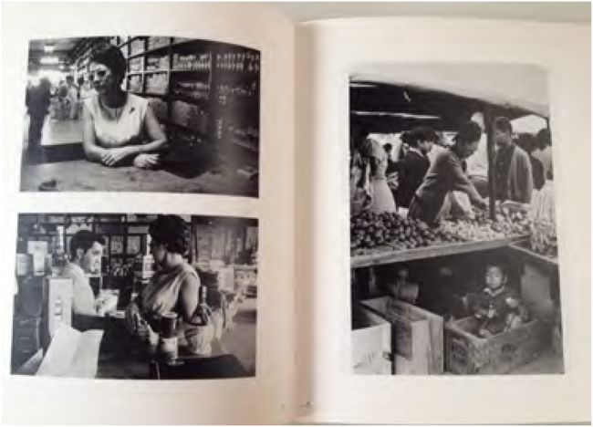 Mais de um ano depois, em maio de 1963, Andujar acompanhou uma família de classe média paulistana. As imagens desta família mostram a grande casa em que vivem, tanto de dentro, com vários cômodos diferentes, quanto de fora, onde podemos ver parte do também grande terreno onde ela se encontra. Mostra-se a família reunida na sala de estar, na sala de jantar, na cozinha, na sala de televisão. Também o pai da família em seu trabalho, bem como a mãe em seu trabalho, e depois fazendo compras de mantimentos. A filha é mostrada no salão de beleza, e se arrumando para uma festa. Vemos, enfim, uma festa de aniversario do pai da família. Assim como na série baiana, nesta existe uma marcada presença de crianças. No entanto, o que mais salta aos olhos nestas imagens é a presença de pessoas com traços asiáticos. O bairro do Jabaquara, onde a família vivia, é um dos redutos da grande comunidade japonesa na cidade de São Paulo, e ela se faz presente na própria família e em seu cotidiano. No retrato que Andujar fez da família reunida, uma jovem e o bebê em seu colo têm traços japoneses. Quando a mãe da família faz compras na feira livre, embaixo da mesa e fora de seu campo de visão, a fotografia mostra uma criancinha também com feições orientais dentro de uma caixa, provavelmente o filho de um feirante (Imagem 2). Da mesma forma, quando a filha da família está se preparando para a festa, a jovem que arruma seu cabelo também tem traços que demonstram origem japonesa.