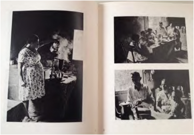No conjunto, as imagens das reportagens se unem em uma grande narrativa, quase como uma fotonovela. Já as legendas e os textos de autoria de John Morris, com a exceção deste pequeno encerramento, são sempre descritivos e diretos. Por exemplo, na reportagem sobre o trabalho na agricultura são levantadas as maiores dificuldades de cada lugar, como a seca no México, o calor no Paquistão, as pragas no algodão do Egito e a geada na Eslováquia. Em seguida, o texto informa que o pai da família do Japão se levanta às 5hs, o norte-americano as 6hs e o italiano trabalha muitas vezes até as 22hs (Ladies’ Home Journal, v. LXV, n. 7, 1948). Assim como no texto que acompanhou a primeira reportagem, sobre a cozinha, em todas elas existe um tom de comparação com a vida e os costumes dos EUA: a família norte-americana se apresentava como medida ou parâmetro, ao mesmo tempo em que é ressaltada sua condição privilegiada frente à pobreza da Ásia e África, e, em especial, dos efeitos da Segunda Guerra Mundial, ainda fortemente sentidos na Europa10.