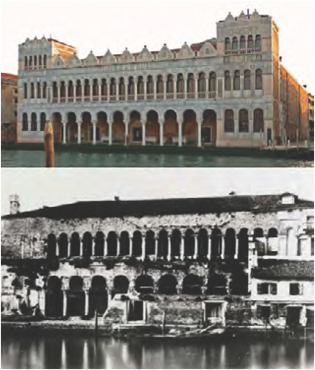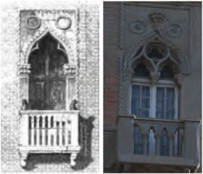 El mismo fenómeno de reinvención se observa en el palacio Cavalli-Franchetti, restaurado por Giovanni Meduna entre 1860 y 1878 y continuado por Manetti, Boito y Matscheg (1878-1881) y, de igual modo, Alfonso Rubbiani (1848-1913) repristina la Loggia della Mercanzia y el palacio Re Enzo de Bologna, al tiempo que Alfredo D’Andrade (1839-1915) restaura la Porta Soprana de Génova (SHANKEN, 2010), gestando entre todos una imagen de la arquitectura medieval italiana alejada de los modelos constructivos que en su origen tuvieron estos edificios.