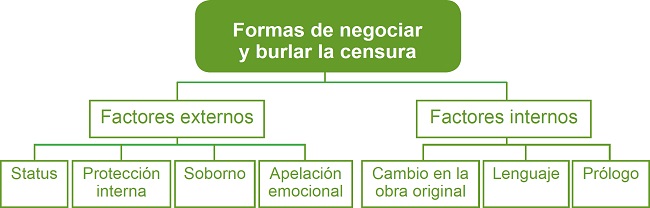 Como se ha subrayado en el párrafo anterior, el formato de lujo era también empleado como estrategia de negociación por algunos escritores. A través del análisis de centenares de documentos conservados en el AGA, logramos identificar otros mecanismos utilizados por los escritores como forma de negociación – entendida como el empleo de los recursos disponibles por una determinada persona o grupo en diálogo con otra persona o grupo para intentar alcanzar un objetivo ( BHABHA, 1998) – o como intento de burlar la censura, entre los cuales identificamos siete casos que, a su vez, están divididos en factores externos e internos a la obra: apelación emocional, proyección del autor, soborno, protección interna; y cambios en la obra original, introducción de prólogos y adaptación del lenguaje.