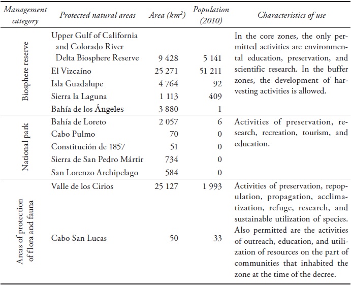 One method of improving the administration of protected natural areas focuses on diversification of their management categories. In principle, the protected natural areas are based on preservation that has as its objective the protection of pristine spaces to impede their alteration (Melo-Gallegos, 2002). However, the loss of biodiversity at the world level required the expansion of the international protected natural areas system, which is many cases made schemes of strict protection impracticable in economic and social terms. At the present time, the platforms that guide international conservation policy promote less restrictive management categories, such as the biosphere reserves (Table 1) that provide for human populations and the sustainable utilization of natural resources (Brenner, 2012).
