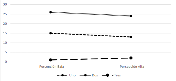 El valor de Gamma muestra que existe una relación de significancia de 0.65 entre los ingresos de los productores y la percepción de la calidad ambiental en relación a los impactos de productivos. Esta relación indica que a mayores ingresos la percepción es más baja, por el contrario, si el ingreso disminuye, la percepción es más alta (ver Gráfico 2).