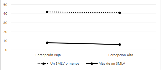 Dentro del análisis de la relación entre nivel de vida y percepción de la calidad ambiental en relación a los impactos de prácticas negativas en los procesos productivos, se exploró la relación con los ingresos mensuales de los productores. Estos ingresos mensuales se definieron en Salarios Mínimos Legales Vigentes (SMLV), teniendo en cuenta los que ganaban cantidades inferiores a un SMLV, y aquellos que percibían ingresos superiores a un SMLV.