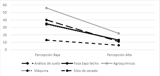 Para la exploración de la relación entre la percepción de la calidad ambiental (en relación a los impactos de prácticas negativas en los procesos productivos) y la tecnificación de los cultivos, se tomaron en cuenta los siguientes indicadores: tecnologías utilizadas en los cultivos y densidad de siembra.