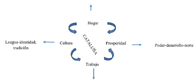 Los marcos territoriales de la construcción identitaria catalana formulada desde el sur excluyen a las comunidades del norte de los Pirineos: “eso no es Cataluña, eso es Francia”. A partir del análisis de las evocaciones más persistentes nos aproximarnos al núcleo figurativo de la representación. Donde hogar, cultura, prosperidad, trabajo constituyen los campos de significados que integran los contenidos más relevantes del objeto representado y garantizan la organización y conservación de los elementos periféricos.