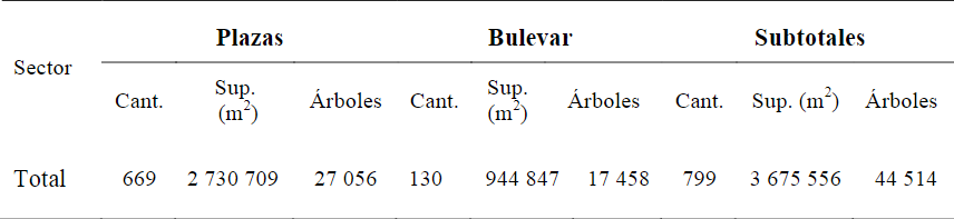 En mayo de 2016, se solicitó a la DPJ el inventario de áreas verdes a su cargo. La lista dividía la ciudad en cuatro sectores y contenía el nombre del área verde, superficie y la dirección (ubicación). Adicionalmente, las clasificaba en plazas, bulevares y áreas rurales; éstas últimas, en realidad se hallaban fuera del polígono de la ciudad, por lo que se descartaron. Asimismo, los bulevares no se consideraron como EVP, dado que la mayoría carecen de infraestructura social. La información proporcionada por la DPJ (resumida en el cuadro 3), revela que la superficie de EVP correspondiente a plazas era de 273 hectáreas, lo que arrojaría 3.08 m. por habitante.