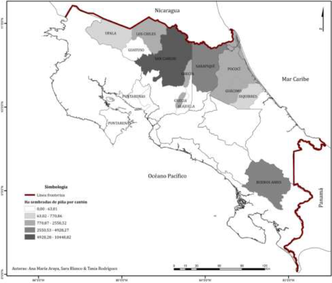 Costa Rica se ha convertido en el primer productor de piña en el mundo con un estimado de entre 45 000 a 58 000 hectáreas destinadas a esta actividad dentro del total del territorio nacional (Maglianesi-Sandoz, 2013), de las cuales, más de la mitad estarían localizadas en la zona norte fronteriza con Nicaragua.