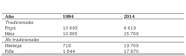 Este modelo de apertura comercial contribuyó a transformar la estructura productiva que predominaba en la Zona Norte, afectando con estos cambios principalmente a las economías campesinas (pequeña y mediana) dedicadas a la producción agropecuaria. Los productos no tradicionales como piña y naranja pasan a ser predominantes en la región, desplazando la producción de granos básicos (Ver tabla 1). Pero a pesar de las diferentes actividades agrícolas y la incursión de empresas transnacionales y de capital extranjero, en términos de distribución de la riqueza, esta región ostenta hoy en día los índices más bajos de desarrollo social, en especial en los cantones de Upala, Los Chiles y Guatuso (Zeballos, 2013), los cuales se posicionan en los últimos lugares en cuanto al Índice de Desarrollo Humano en Costa Rica.4