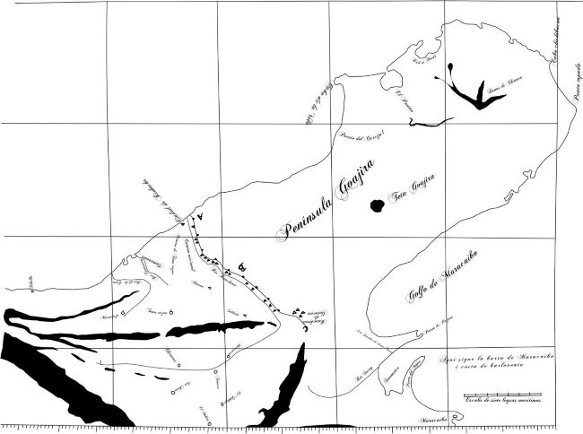 una nueva línea a la distancia de tres o cuatro leguas de la primera; de manera que las tribus se vieren forzadas bien a incorporarse en estas nuevas poblaciones, o a concentrarse en el extremo noroeste de la península hacia el cabo Chichivacoa (AGN, 1843, f. 233r).