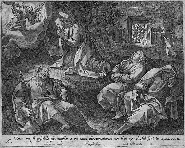 Las escenas se presentaron bajo dos formas: completas o enfatizando tan sólo una sección o algún elemento que simbólicamente hacía referencia a la escena completa, a un fragmento o al personaje. En las escenas integradas se distribuyó la información visual y de contenidos a partir de la perspectiva horizontal. Por ejemplo, en La Oración del Huerto es factible definir la importancia de los protagonistas a partir del orden como se van describiendo. En un primer plano los apóstoles descansando, en una segunda línea y otorgando centralidad a la escena aparecía Jesús orando y a un lado en una mínima proporción, los soldados aluden a la próxima aprehensión del protagonista al portar las lanzas, que se convierten en elementos iconográficos de las escenas pasionales. Los elementos topológicos de la narración regulan la disposición de las figuras en el espacio gracias a la memoria. En la misma escena, el hecho de que se describa al Nazareno de perfil, sin frontalidad, rezando con las manos juntas o hincado, remite al lector la idea de la humildad como componente de la oración mental. En este caso, las figuras conformaban parte de un paisaje iconográfico coherente a través de relaciones asociativas como los árboles, el monte o el ángel o la noche.47 Esta escena fue recurrente en los casos de Elvira de San José, Francisca de la Natividad, Micaela del Sacramento, Catalina de San José y la propia Melchora de la Asunción, quien aporta la relación más completa de esta representación: