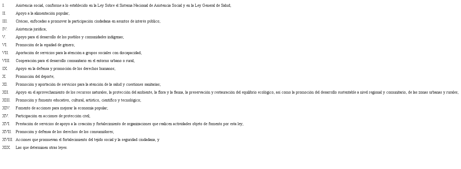 Las organizaciones de la sociedad civil (OSC), también conocidas como organizaciones no gubernamentales (ONG), organizaciones del tercer sector o instituciones sin fines de lucro (ISFL), han ido aumentando desde los setenta con un importante crecimiento después del sismo de 1985, el cual afecto significativamente la Ciudad de México (Collin y Rafael Molina 2009; Girardo y Mochi 2012; Butcher 2014). Sin embargo, es hasta 2004 que son reconocidas legalmente, otorgándoles derechos y obligaciones, a través de la Ley Federal de Fomento a las Actividades realizadas por Organizaciones de la Sociedad Civil (DOF 2004). En el artículo quinto de esta ley se enlistan las actividades a las que se pueden dedicar las OSC (cuadro 1), y en el sexto se especifican sus derechos (e.g. Art. 6, II. Participar, conforme a la Ley de Planeación y demás disposiciones jurídicas aplicables, como instancias de participación y consulta).