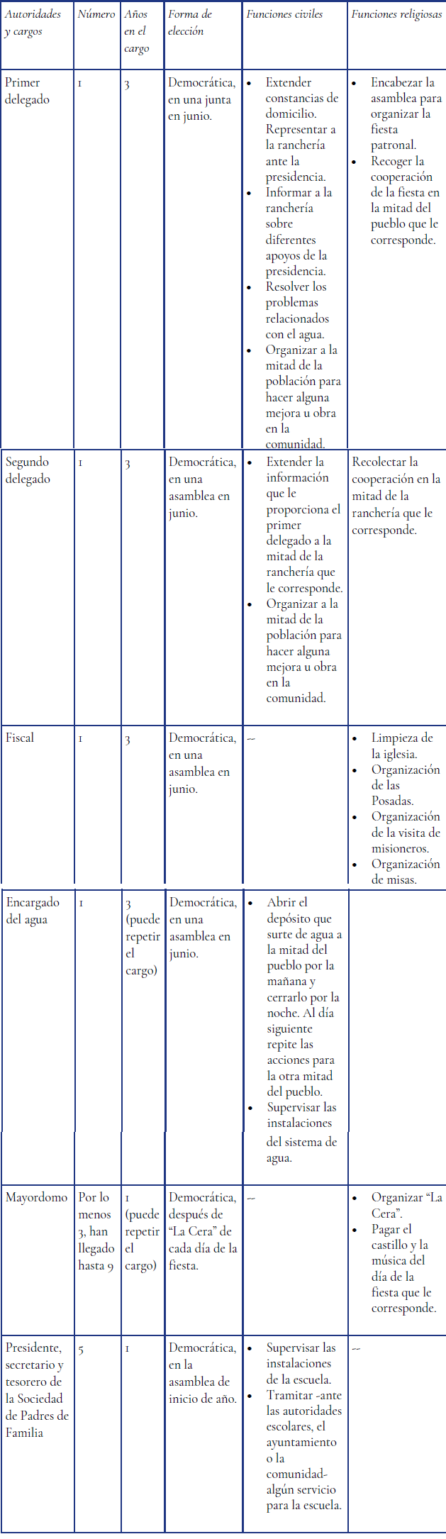 Las autoridades, los cargos y sus funciones