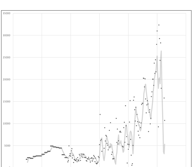 Desde finales del Medievo, Almadén fue explotado por asentistas. En 1525, Carlos I (1516-1556) concedió el asiento a los Fúcares. En 1645, pasó a depender directamente de la administración real (Lang, 1977, pp. 63-65; Matilla Tascón, 1986, pp. 304-305). La transición implicó un deterioro en la producción de la mina durante el resto del siglo [Gráfico 2]. La producción no se recuperó sino hasta la dinastía Borbón.