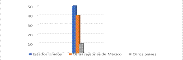 Lo que se muestra en la gráfica es un aumento de más de 20 veces en inversiones industriales en casi cuatro décadas: de 100 millones en la década de 1940, 1,500 en la década de 1950, 3,500 millones en la década de 1960 y casi 5,000 millones para finales de la década de 1970. Lo anterior ayuda a entender la importancia de las inversiones en el sector secundario de la economía en la ciudad y su área metropolitana durante la ISI. Ahora bien, ¿de dónde provinieron esas inversiones? Es decir, ¿cuál fue el origen de esos capitales? Las inversiones en el sector industrial entre 1940 y 1980 provinieron principalmente de los Estados Unidos, con un 50 %; de otras regiones de México –como se ha señalado–: Distrito Federal, Estado de México y Monterrey, con un 40 %, principalmente, y en un menor porcentaje de naciones como Suiza, Canadá, Gran Bretaña, Francia, Alemania y Japón, que en su conjunto fue de un 10 % de inversión (ver Gráfica 2).