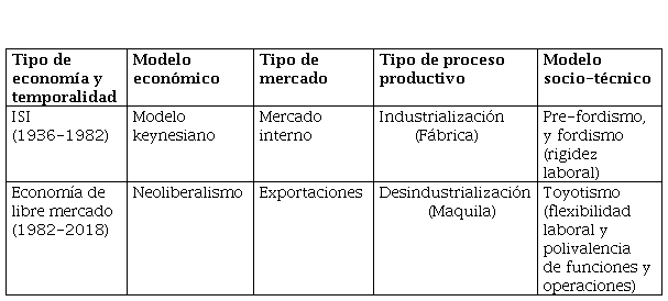 A la par de ello, las medidas que se implementaron con el cierre de la ISI y la entrada del neoliberalismo fueron el retiro del Estado en las actividades productivas (venta de empresas públicas) y una política de finanzas públicas sanas y control de la inflación. A lo anterior se sumaron la reestructuración productiva y la introducción de la flexibilidad laboral para reducir el costo de la fuerza de trabajo” (González et al, 2014, p. 152). Las diferencias entre los modelos de industrialización a nivel nacional y local quedan especificadas en el Cuadro 1.