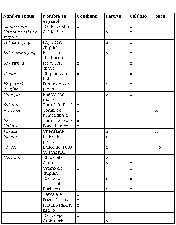 La dieta zoque es equilibrada y variada, incluyendo una amplia gama de nutrientes como proteínas, grasas, carbohidratos, vitaminas, minerales y fibra. “Las recetas típicas poseen una identidad única, reflejada en sus nombres y en los ingredientes utilizados, los cuales han sido heredados de sus antepasados y conservados a lo largo del tiempo. Este legado cultural se transmite a través de las cocineras tradicionales, quienes preservan y comparten con orgullo los conocimientos y procesos culinarios ancestrales”, llama a reflexionar cómo el turco garbanzo se colocó con “naturalidad” en los platillos “autóctonos” como se detalla en la tabla 2.