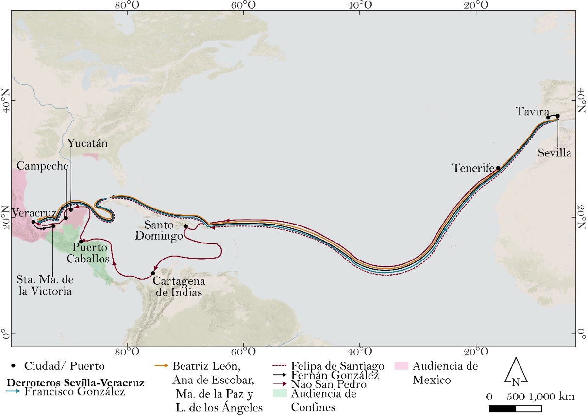 Por los puertos como Tlacotalpan, Espíritu Santo, Santa María de la Victoria, Campeche y Yucatán “se encontraban dispersas decenas de embarcaderos, puertos interiores y bodegas de donde se concentraban y distribuían las mercancías que por allí transitaban (cacao, ixtle, algodón y sal, etc.)” (Alcántara, 2016, p. 81). En esta dinámica regional de la configuración de las rutas de navegación en el Golfo-Caribe a fines del siglo XVI se puede entender la presencia de Fernán González como dueño de una fragata en el puerto de Santa María de la Victoria, pequeño enclave que tuvo una posición estratégica en la articulación de las rutas de cabotaje que perlongaban el litoral del Golfo hasta conectarse con las Antillas Mayores y la Tierra Firme centroamericana.