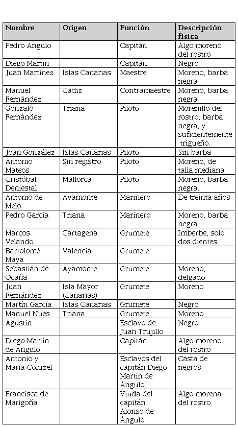 Las averiguaciones fueron llevadas por el Dr. Murillo de la Cerda, quien mostró que la ruta seguida por esta nao involucraba a los puertos de Santo Domingo, Cartagena de Indias, Puerto Caballos en Honduras, Yucatán y Campeche [ver mapa 2]. 16 Los tripulantes fueron los primeros inculpados y castigados, de ellos se hizo una descripción detallada donde se destacó el nombre y apellidos, origen, oficio y descripción física [ver cuadro 1].