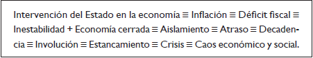 En otros casos, el presidente vinculaba a las reformas neoliberales con la inevitabilidad del fenómeno de la globalización, destacando que "nuestros países, individualmente, no pueden modificar ni un ápice de la realidad política económica mundial, aunque esta nos afecta profundamente" (Menem, 1990, s/p). En ese marco, aquellos sectores que seguían defendiendo el mercadointernismo eran catalogados como los nostálgicos que seguían anclados en ideas viejas , anacrónicas y perimidas, los mismos que habían sido superados por los avatares de la historia (Menem, 1991g, p. 95).