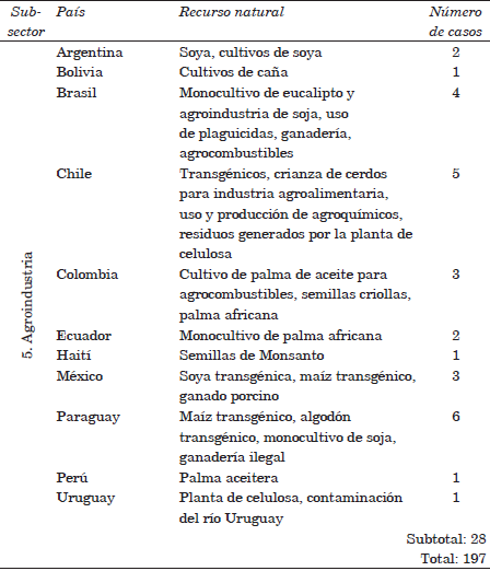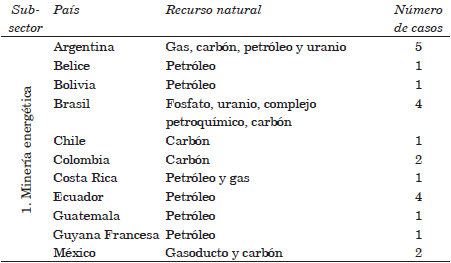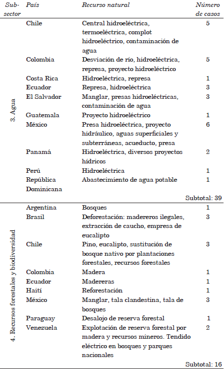 El Cuadro 3 indica algunos casos que registran los conflictos ambientales en América Latina. Por la cantidad de estos conflictos no hay espacio para hablar de su problemática específica; simplemente se enumeran por subsector.