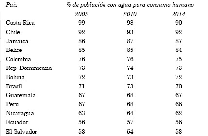 En el Cuadro 3, es perceptible la existencia de países latinoamericanos como Ecuador, El Salvador, Nicaragua, entre otros, donde la mayor parte de la población no sólo carece de dicho recurso, sino que también no lo dispone en condiciones adecuadas, es decir, el agua en dichos países no está entubada o no esta tratada apropiadamente para que sea consumida directamente en el domicilio, haciendo que la carestía sea todavía mucho más compleja y delicada, pues a medida que la población y la demanda aumentan, la oferta se merma cada vez más.