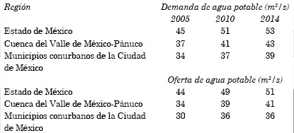 De 1996 a 1999, el Estado de México tuvo un déficit de 6 m3/s, resultado de una demanda de 38 m3/s cuando el caudal disponible era de sólo 32 m3/s. En afán de cubrir esta demanda, se generó una sobreexplotación del recurso, ya que se extrajeron 1 619 millones de m3 de los mantos acuíferos del Valle de México, cuando la recarga era de únicamente 788.4 millones de m3; se trataba, pues, de una capacidad de reposición menor al 50% (inegi, 2000).