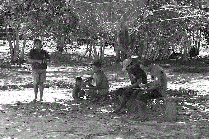 Los momentos de alimentación comunitaria, denominados caribé,5 ocurrían por la mañana y al final de la tarde. Eran muy importantes para las actividades de Luis, pues era cuando se enteraba si había alguien enfermo. Durante el caribé, Luis aprovechaba para informar sobre sus actividades, distribuir medicamentos, tomar la presión arterial (PA) de los hipertensos y ofrecer charlas.