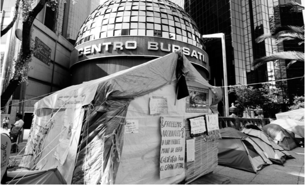 Quienes toman las plazas de las grandes ciudades ya no son colectivos organizados que se vinculan y preparan para la acción, son irrupciones de los cualquiera, que a título personal (Bennett, 2012) salen a las calles, se encuentran y construyen espacios de convivencia e interlocución inesperados, multitudes que crean constelaciones de sueños en común y detienen sus vidas en un tiempo pleno, un Jetztzeit en el sentido de “tiempo del ahora”, que invoca Walter Benjamin en sus Tesis sobre la historia (2008: 51); en el que se prefiguran las formas de la convivencia y se rompe el “continuum de la historia”, el tiempo homogéneo y vacío de la expropiación capitalista.