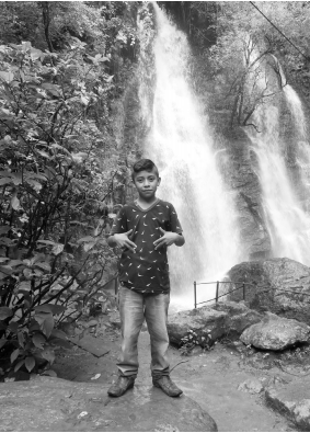 Al terminar la aventura, le ofrecí un dinero que no me pidió de manera directa. Explicó que todo el dinero que reunía gracias a las aventuras estaba destinado a la compra de una bicicleta que le permitiría ir a la escuela con más frecuencia. Wiki insistió en que lo recaudado no era para otra cosa, “como comida chatarra”. Después pude comprobar que la escuela a la que asistía se situaba en un pueblo a casi media hora a pie de la aldea donde él vivía, o sea, a 2.5 km de distancia y con un desnivel de 200 m. Asimismo, el niño explicó que sus hermanos y hermanas también aportaban dinero para aliviar los gastos de la familia. En particular, sus hermanas contribuían con el pequeño beneficio que obtenían de la venta de galletas, bebidas y botanas que ofrecían a la orilla de la carretera, justo antes de llegar a la cascada. Me explicó que primero reembolsaban a sus papás la inversión y luego compraban su ropa con la diferencia. Por último, precisó que también ellas “iban de aventuras”, pero sólo los días en los que había mayor afluencia de personas, como Semana Santa, por ejemplo.
