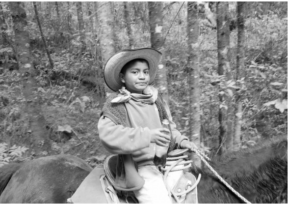 A medida que nos acercábamos al santuario, apenas indicado por un pequeño cartel, ya no se detectaba la presencia de piratas. Otros niños nos alcanzaban con tranquilidad, sin que Benjamín se molestara. Ante mi asombro, dijo sonriendo que esos niños no eran piratas sino “oficiales”. Explicó que su tarea era cuidar, dar de beber o comer a los caballos, cepillarlos y atarlos a los árboles mientras los visitantes hacían los recorridos al santuario acompañados por los guías. De regreso, Benjamín comentó que todos los oficiales eran hijos de compañeros, guías en quienes se podía confiar: “están aprendiendo la parte más importante del oficio […]. ¡Si no saben nada de caballo, no pueden ser guías jamás!”.