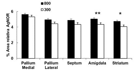 Los resultados obtenidos mostraron sólo una activación significativamente mayor de la amígdala y el striatum en los animales experimentales en relación con los controles (estas regiones son homólogas al sistema amigdalino-estriatal de los mamíferos). Las diferencias entre grupos en las demás regiones analizadas (el pallium lateral, el pallium medial y el septum) no alcanzaron niveles significativos.