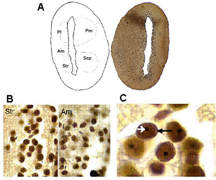 Mühlenbrock-Lenter, J., Endepols, H., Roth, G. & Walkowiak, W. (2005). Immunohistological characterization of striatal and amygdalar structures in the telencephalon of the fire-bellied toad Bombina orientalis. Neuroscience, 134, 705-719.