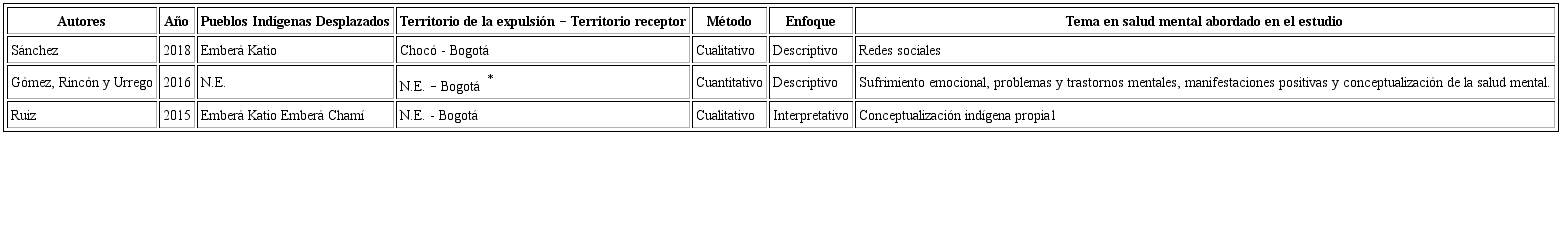 Finalmente, de los 51 estudios cuyo texto completo fue analizado, se encontró que solo 3 abordaban el desplazamiento forzado interno y la salud mental en población indígena en Colombia.