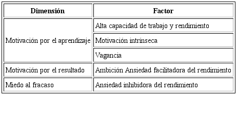De acuerdo con el análisis de las estructuras factoriales se puede concluir que el factor ansiedad inhibidora del rendimiento que originalmente estaba conformada por 12 ítems queda en la versión adaptada con 8 ítems. Inicialmente en la literatura se denominó “miedo al fracaso” (Atkinson, 1964) o “indefensión aprendida” ( Dweck y Elliott, 1983) sin embargo, la investigación de Alonso Tapia (1992b) prefiere mantener la denominación original de ansiedad inhibidora del rendimiento dado que es más genérica y podría recoger aspectos que en la literatura aparecen por separado.