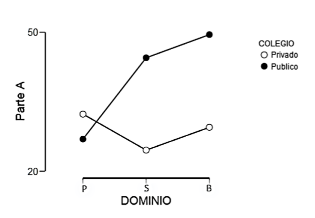 En promedio el número de elementos realizados en P y C fue mayor para el grupo del colegio privado (P: 87.06 y C: 62.83) que para el grupo del público (P: 81.67 y C: 59.76). Se presentó una diferencia significativa de 0.045 para P y de 0.017 para C. Sin embargo, el colegio público demostró tener mayor puntaje en el índice de interferencia (I) con una diferencia significativa de 0.012. Al analizar los resultados entre los niveles educativos de cada colegio, se observó que los participantes de BS y EM del colegio privado producen una mayor cantidad de elementos en P y C, presentando una diferencia significativa en C (p.0.039). En cuanto a I, los estudiantes de BS de colegio público obtienen mejor puntaje. Por otra parte, los estudiantes de EM en el colegio privado tienen mejores resultados que sus pares de colegio público.