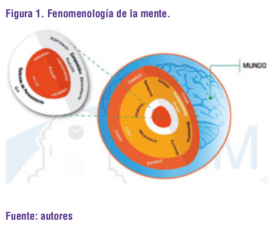 Para el desarrollo de la investigación se estableció un diseño organizacional cognitivo que facilita la compleja tarea de graficar la estructura de la cognición. Esta postura de organización permitió delimitar el abordaje teórico y metodológico pertinente. Un instrumento de representación visual se propone para este diseño: un esquema conceptual macro de la mente como sistema (véase ilustración 1). Ambos permiten visibilizar el planteamiento y el fundamento del marco teórico de esta investigación.