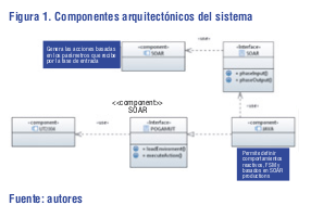 En esta fase se construyó un módulo que relaciona el lenguaje Java, el entorno de pruebas UT2004 y la arquitectura cognitiva SOAR, esto facilitó la programación de los agentes, de manera que pudieran exhibir tanto sus comportamientos reactivos como los que fueron determinados por la arquitectura cognitiva. La figura 1 ilustra el diseño arquitectónico y configuración del sistema.