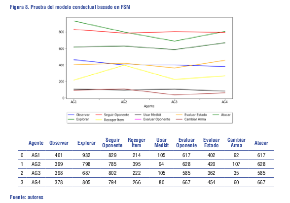 ABSTRACT: Background: Several techniques allow the development of poorly predictive artificial behavior models, such as finite state machines (FSM) and the use of cognitive architectures based on the theory of mind for the construction of agents whose behavioral model lies on a system of productions. Objective: It was proposed to generate artificial behavioral models to determine the conditions under which they demonstrate poorly predictive behaviors. Methodology: The first stage consisted of choosing platforms and tools; Pogamut, UT2000, SOAR, and Java were chosen. In the second stage, the coupling interface between the cognition engine, the language, and the environment was developed. Finally, in the third stage, the behavioral models were tested. Results: In the FSM model, it was possible to contrast the states and decisions made by the agents when there are restrictions in the set of actions predefined in its logic. It was also possible to contrast SOAR productions in terms of the predictability of the agent’s actions based on what is perceived in the environment. Conclusions: Finite state machines are an important component when one wants to inspect the reactive behavior of an agent that pursues a single goal. Reflexive agents rely on their logic for the immediate perception of their environment without regard to decisions they have made or states they have already undergone. SOAR programs adjust the feedback of their environments in certain cases