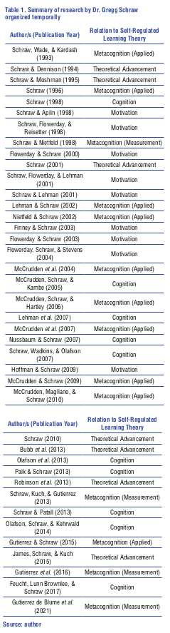 An homage to the research legacy of Dr. Gregory Schraw: The theory of self-regulated learning