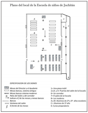 De tal suerte, hasta poco antes de terminar el siglo xix, las lecciones de las primarias de Juchitán debieron dictarse en locales designados por las autoridades municipales. En estos recintos, pese a que no reunieran las condiciones higiénicas o pedagógicas necesarias, bastaba con que tuvieran la extensión y ventilación indispensables al clima tan cálido de la región, solventando así, temporalmente, las grandes carencias materiales.