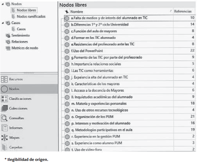 Para el análisis de los datos, se utilizó el software Nvivo 10, apoyo inestimable para realizar las tareas tanto mecánicas de almacenamiento, organización, etcétera, de toda la información, como las propias de la investigación (búsquedas textuales, planteamiento y verificación de interrogantes, creación de mapas conceptuales y de teorías, etc.), facilitando así, como veremos a continuación, el análisis de los resultados y la elaboración de conclusiones.