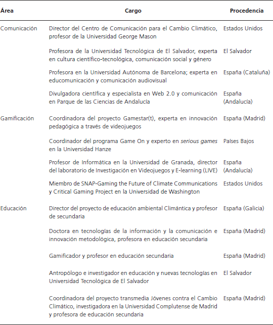 La muestra participante (Tabla 2) constó de un total de 13 expertos de cuatro países y contextos culturales diferentes, pertenecientes a tres perfiles de especialidad distintos (comunicación, gamificación y educación).