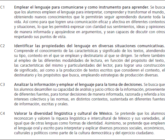 Al ser un método de enseñanza que promueve el desarrollo de competencias y que aporta beneficios importantes al aprendizaje de los alumnos, en México, a partir de 2009, los programas de estudio de primaria adoptaron el ABPr como modalidad de trabajo en la asignatura de Español pues permite la aproximación gradual de los alumnos a los usos sociales de la lengua mediante el trabajo colaborativo y los intercambios comunicativos, movilizando los conocimientos previos al tiempo que aprenden otros nuevos en situaciones que les permitan aprender a hacer haciendo. En el caso específico de la asignatura de Español, se pretende que a través del ABPr se promueva el desarrollo de las cuatro competencias comunicativas específicas establecidas en los programas de educación primaria (Tabla 2). Con el trabajo de estas competencias se busca que los alumnos adquieran la capacidad de comunicarse de forma eficiente, además de contribuir al desarrollo de competencias para la vida (SEP, 2011b).