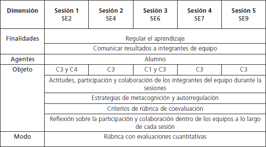 El TiSE II —evaluación entre alumnos— se presenta durante todas las sesiones y predomina, mayoritariamente, durante el proyecto pues de las 12 SE identificadas, cinco pertenecen a este tipo (Tabla 6). Mediante una rúbrica, utilizada por uno de los integrantes de cada equipo, se valora el nivel de participación, actitudes y colaboración de los alumnos que lo conforman. El niño designado para llevar a cabo esta tarea reflexiona sobre la participación e implicación en el trabajo de cada uno de sus compañeros de grupo en función de cinco criterios (por ejemplo, siempre proporciona ideas útiles al equipo) y asigna una puntuación de 0 a 2 en cada uno de ellos. Esta valoración se realiza en presencia del grupo de trabajo, lo que permite que los resultados sean del conocimiento inmediato de todos los involucrados. Asimismo, es interesante observar que si bien el instrumento utilizado —rúbrica de coevaluación— (ver Anexo B) tiene criterios que permiten medir el nivel de logro alcanzado a través de valoraciones cuantitativas, el foco de la evaluación se centra únicamente en las actitudes demostradas durante la sesión, dejando de lado los contenidos conceptuales y procedimentales.