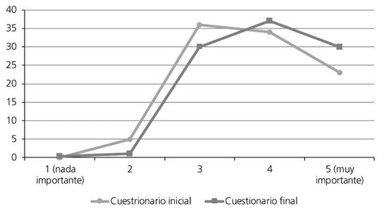 Por otra parte, la innovación también ha sido valorada positivamente en cuanto a su contribución para el aprendizaje del contenido de la asignatura. En este sentido, el cuestionario final muestra un incremento (ME= 3.80) respecto del inicial (ME= 3.69) en la relevancia otorgada por el alumnado al contacto con agentes de asociaciones u organizaciones sociales como elemento facilitador del aprendizaje y seguimiento de la asignatura. Los discursos manifestados en los grupos focales corroboran estas opiniones: